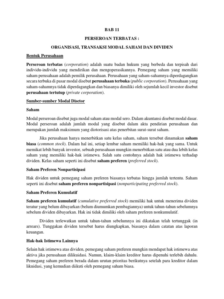 Contoh Soal Dan Jawaban Saham Preferen Dan Saham Biasa