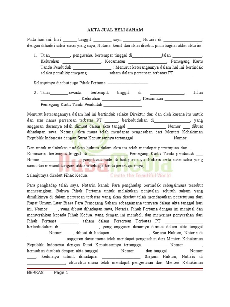 214, cibinong bogor, untuk selanjutnya disebut sebagai pihak pertama. Berikut sedikit cuplikan dari surat ini yang bisa anda download dalam format.doc (microsoft word document) melalui link di bagian bawah artikel ini. Sehingga surat ini sangat berharga bagi perusahaan didalam isi surat saham salah satunya menyatakan bahwa pemilik saham juga pemilik bagian perusahaan tersebut.