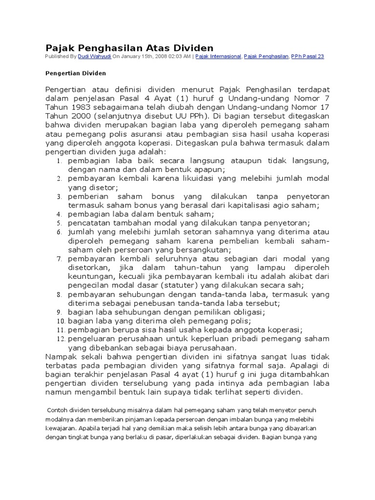 Pajak atas Dividen dan Contoh Penghitungannya Pengadaan